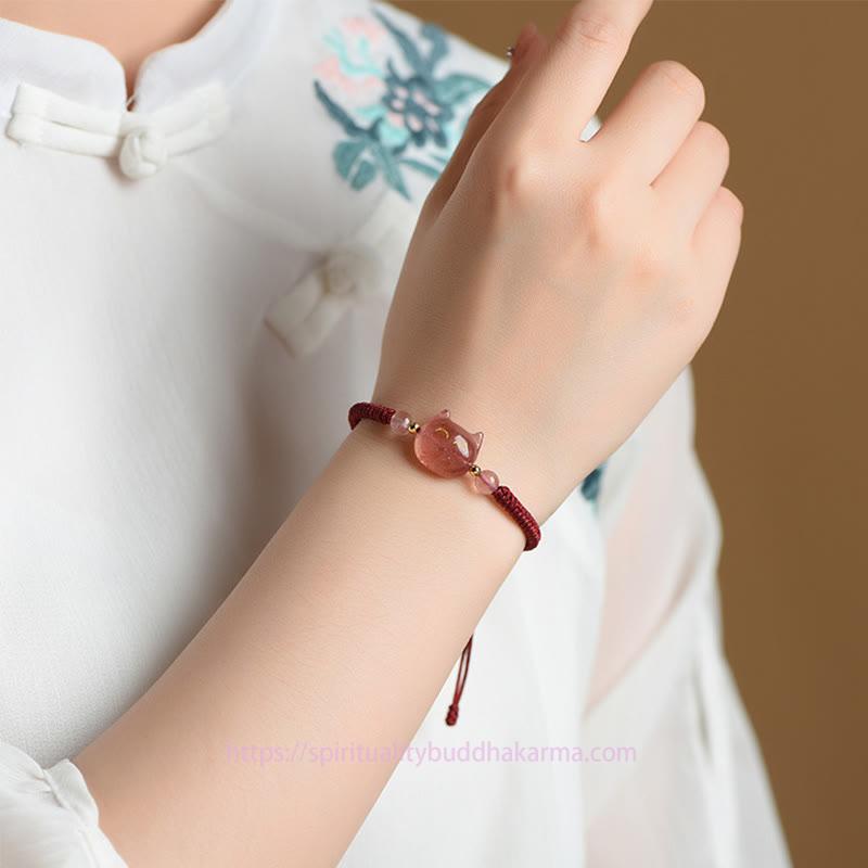 Discover a harmonious blend of Silver Sheen Obsidian and Strawberry Quartz in this handmade cat protection bracelet. Silver Sheen Obsidian enhances communication, soothes, and safeguards against negativity. Strawberry Quartz amplifies love and healing energy. The included red string symbolizes protection, luck, faith, and connection from Tibetan and Chinese traditions. Embrace positivity and protection with this unique accessory, reminding you of love, support, and resilience.💕