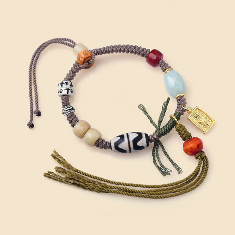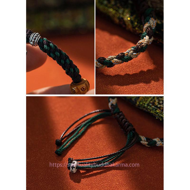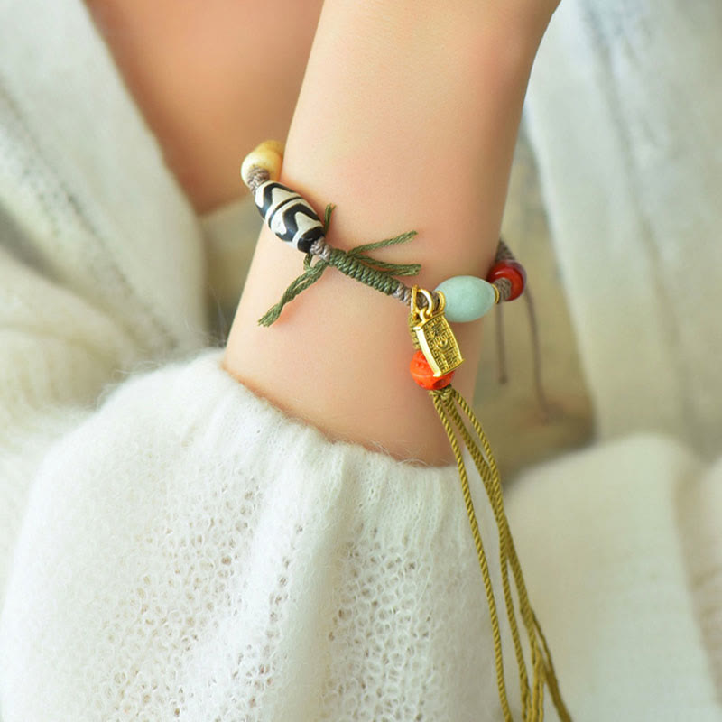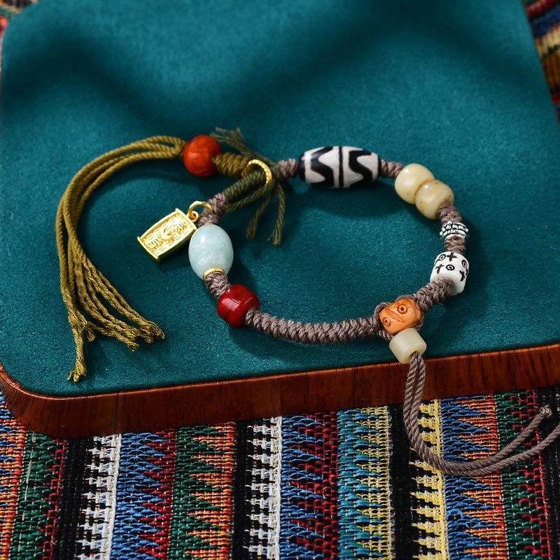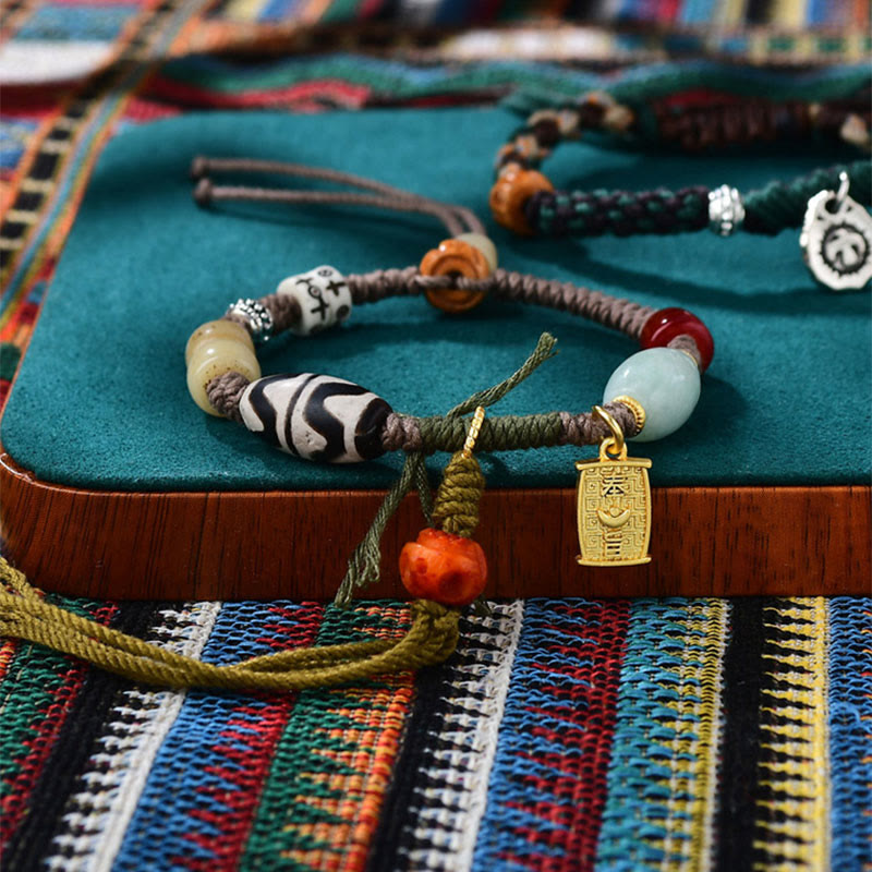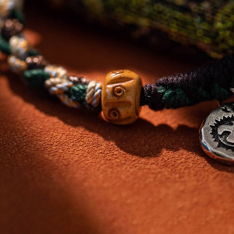 Ancient Tibetan Buddhist Red String Tradition Tibetan Dzi Bead Agate Yak Bone Wealth Rope Bracelet