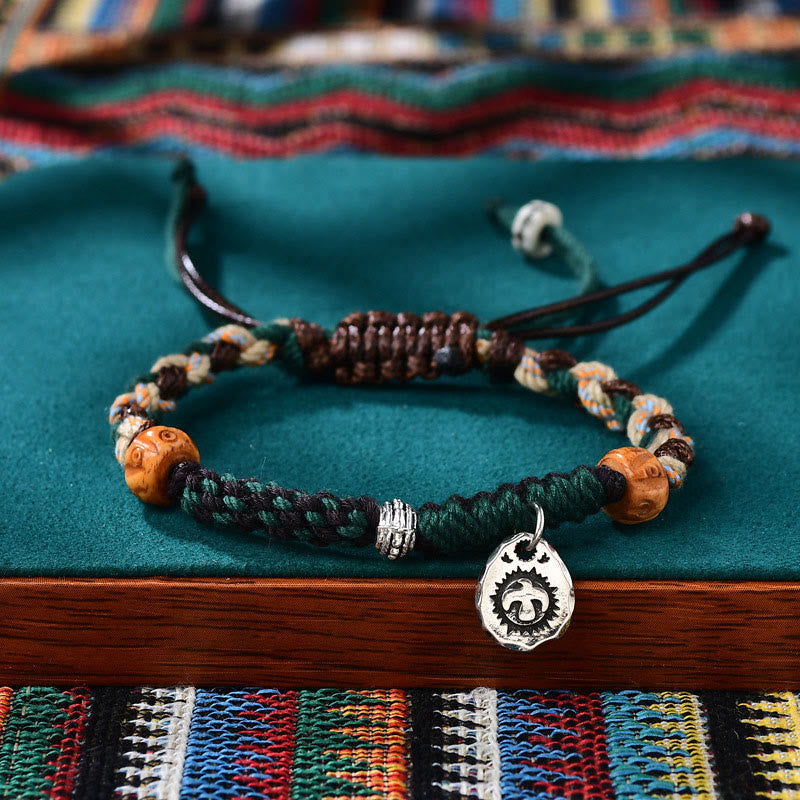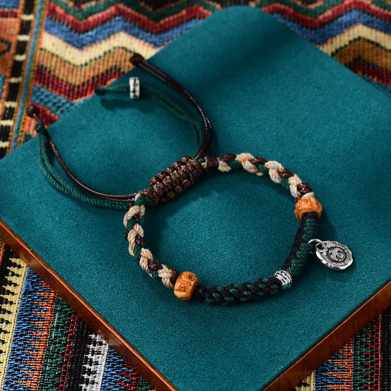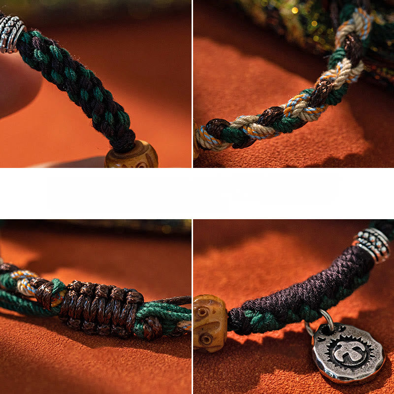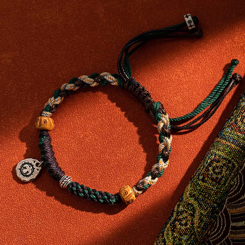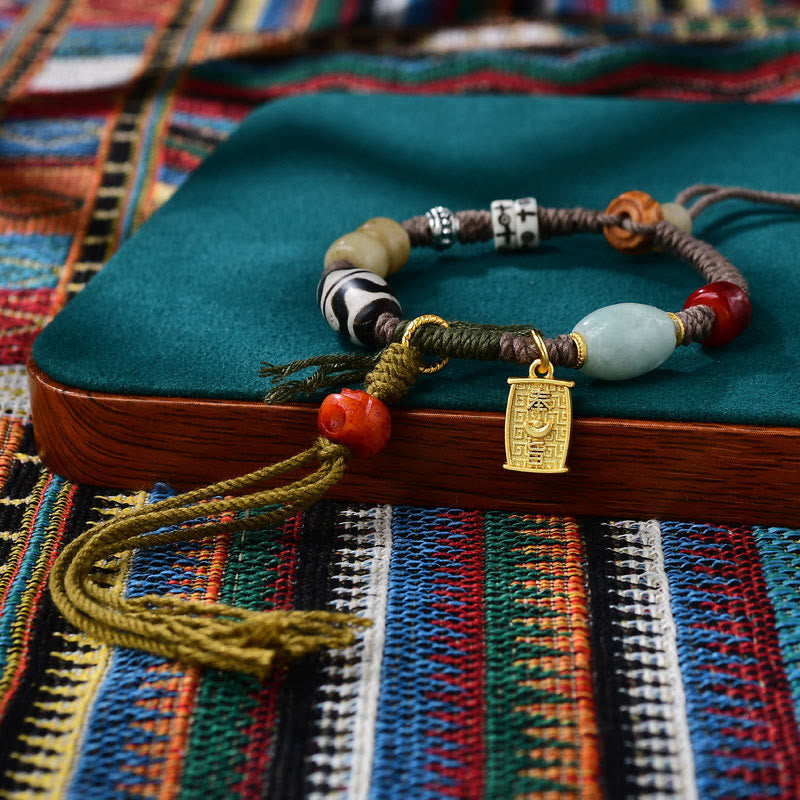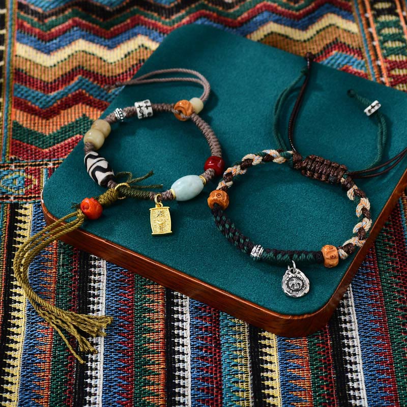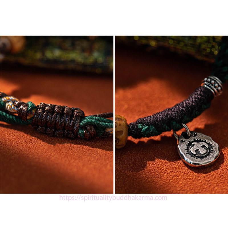 Ancient Tibetan Buddhist Red String Tradition Tibetan Dzi Bead Agate Yak Bone Wealth Rope Bracelet