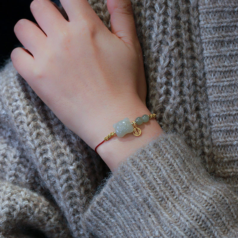 Spirituality Buddha Karma Chinese Zodiac Tiger Jade Prosperity Red String Bracelet Bracelet BS 3