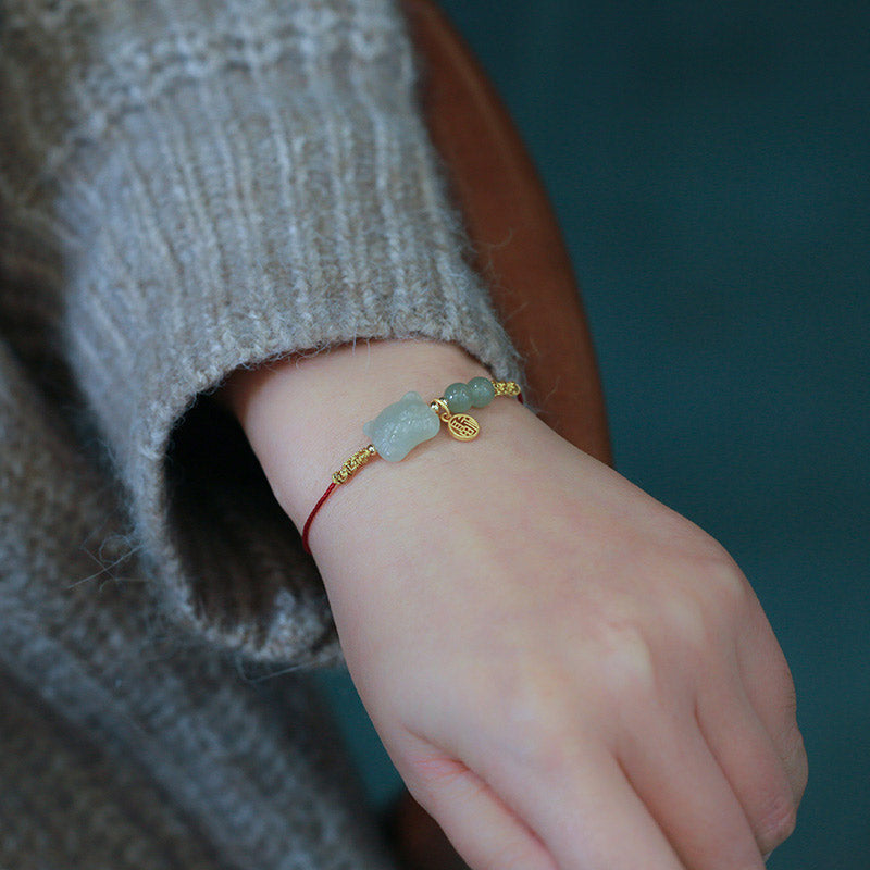 Spirituality Buddha Karma Chinese Zodiac Tiger Jade Prosperity Red String Bracelet Bracelet