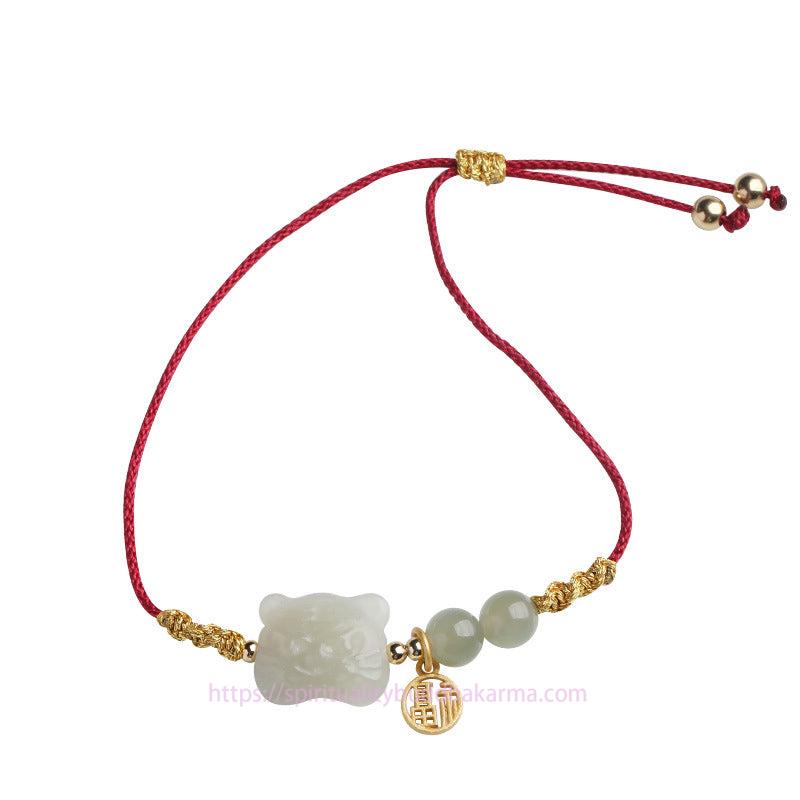 Spirituality Buddha Karma Chinese Zodiac Tiger Jade Prosperity Red String Bracelet Bracelet BS 2