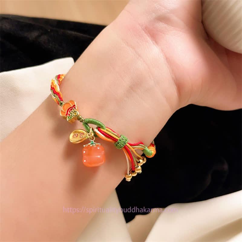 Ancient Tibetan Energy Protection Persimmon Red Agate Strength Reincarnation Knot Braid String Bracelet Bracelet