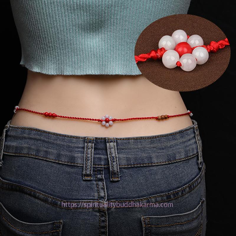 Belly chains, also known as waist chains, are decorative accessories that not only enhance one's appearance but also symbolize body positivity and self-expression. It is also believed wearing red waist threads will help ward off evil effects of enemies. It also aids removal of evil effects of spirits.