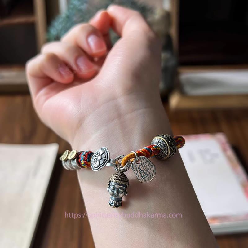 The Spirituality Buddha Karma Zodiac Natal Bracelet is a handcrafted masterpiece in 925 Sterling Silver featuring the Chinese Zodiac Buddha Zakiram Goddess of Wealth. This multicolored rope braided bracelet is not just an accessory but also a symbol of luck and protection. Perfect for those seeking blessings and fortune in their lives.