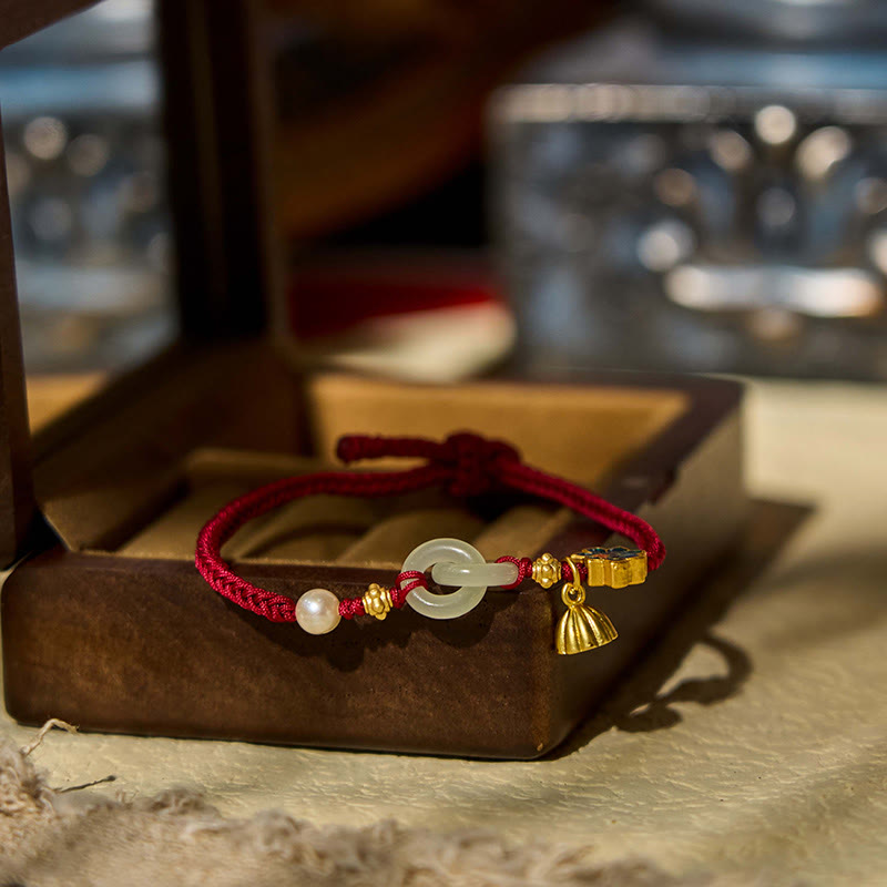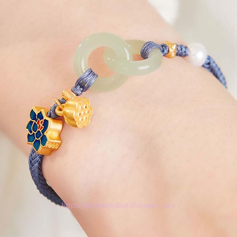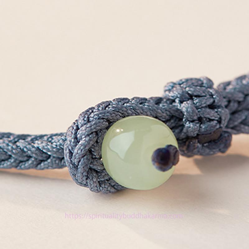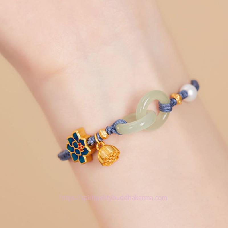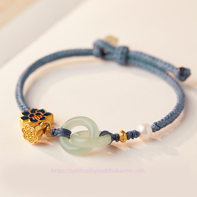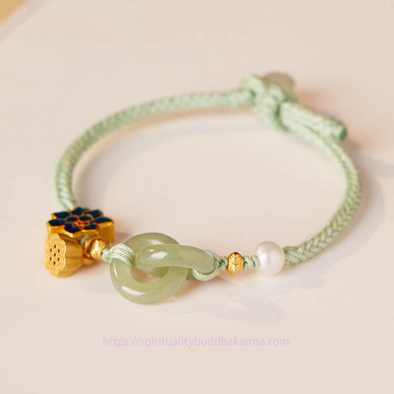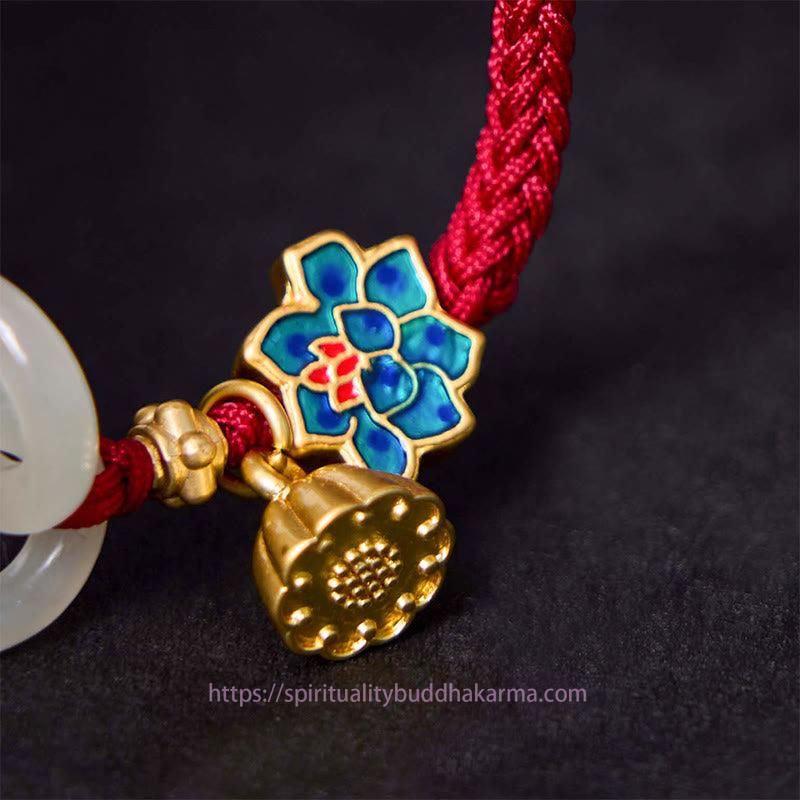 Tibetan Knot Protection Hetian Jade Lotus Peace Buckle Braided Rope Fortune Bracelet