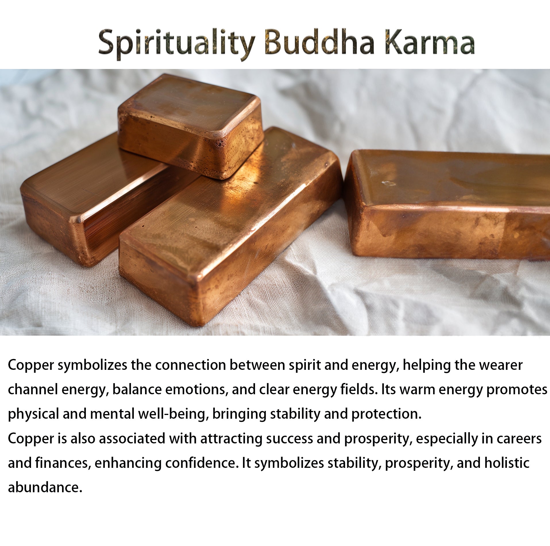Copper metal is a good conductor of heat and electricity. Spiritually, it also grounds and transfers vibration frequencies from the physical realm to the spiritual one, and vice versa. As a result, you can channel and communicate with higher dimensional beings, cleanse your aura, mind, and find out information from the spiritual world. Copper metal is the giver of positivity and goodness, as well as the bringer of good luck in various endeavors. It attracts money, prosperity, and all-round abundance.
