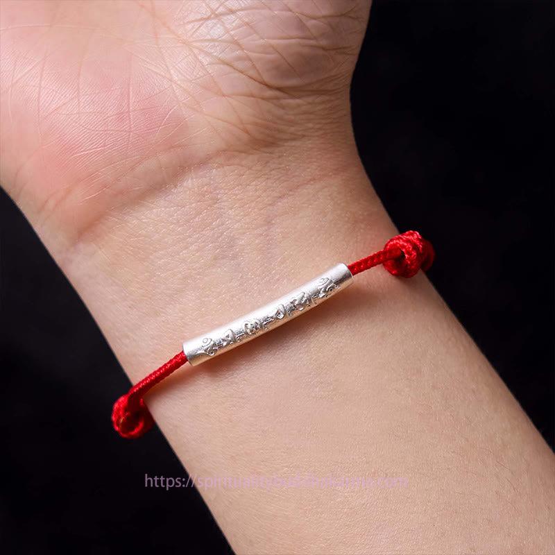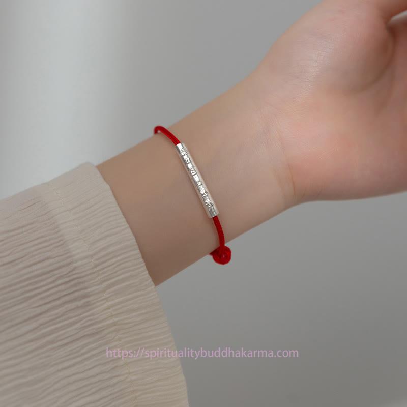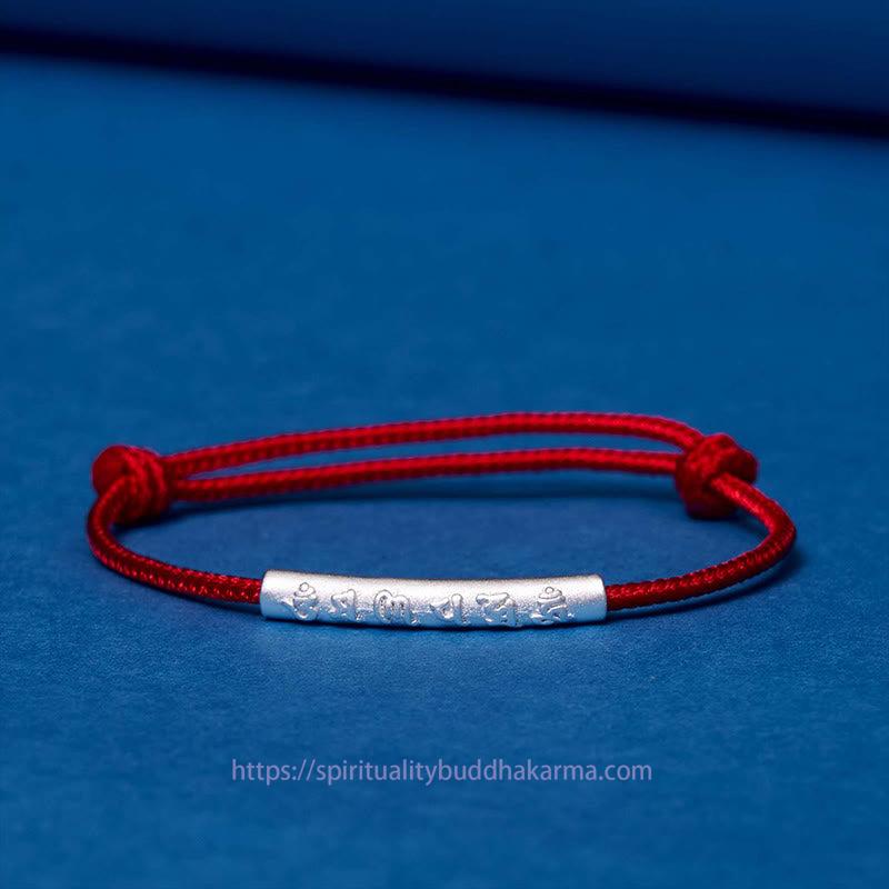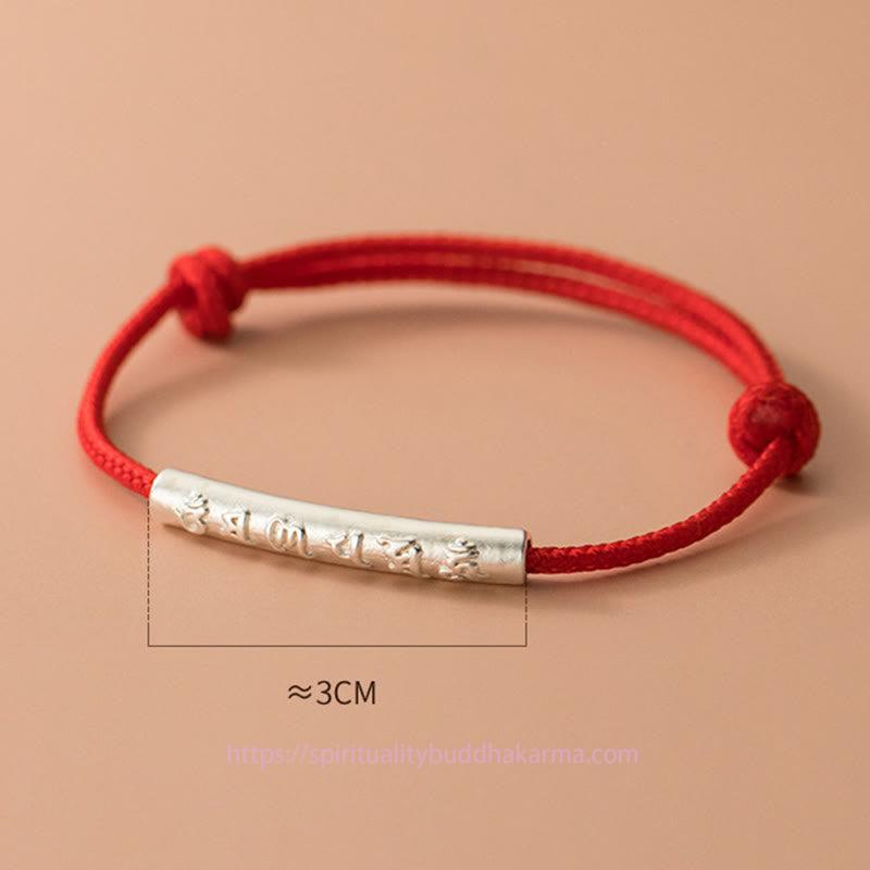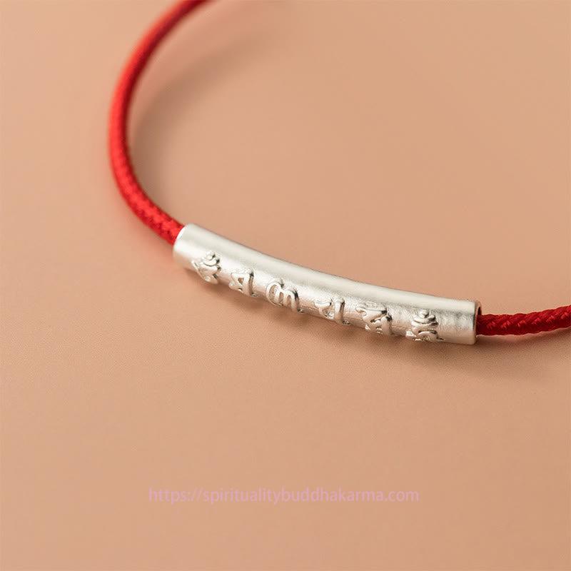 Spirituality Buddha Karma 925 Sterling Silver Om Mani Padme Hum Peace Red String Bracelet Bracelet