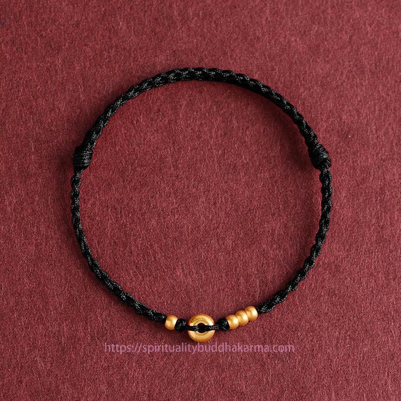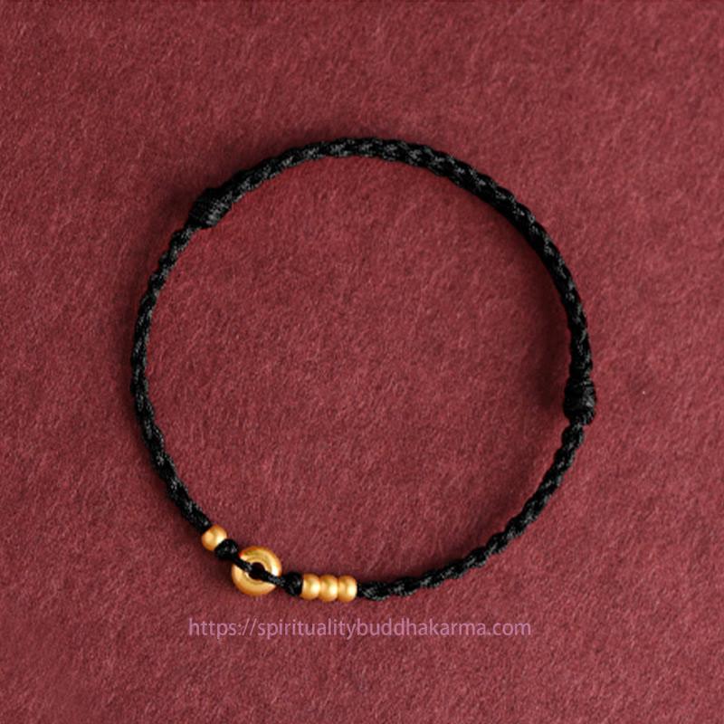 Gold Peace Buckle bracelet anklet features a finely crafted 999 gold peace buckle, symbolizing tranquility and good fortune. Handmade with a sturdy braided rope, this versatile piece can be worn as both a bracelet and an anklet. Its elegant design merges with its meaningful symbolism, making it a valuable accessory that provides both spiritual balance and practical use.