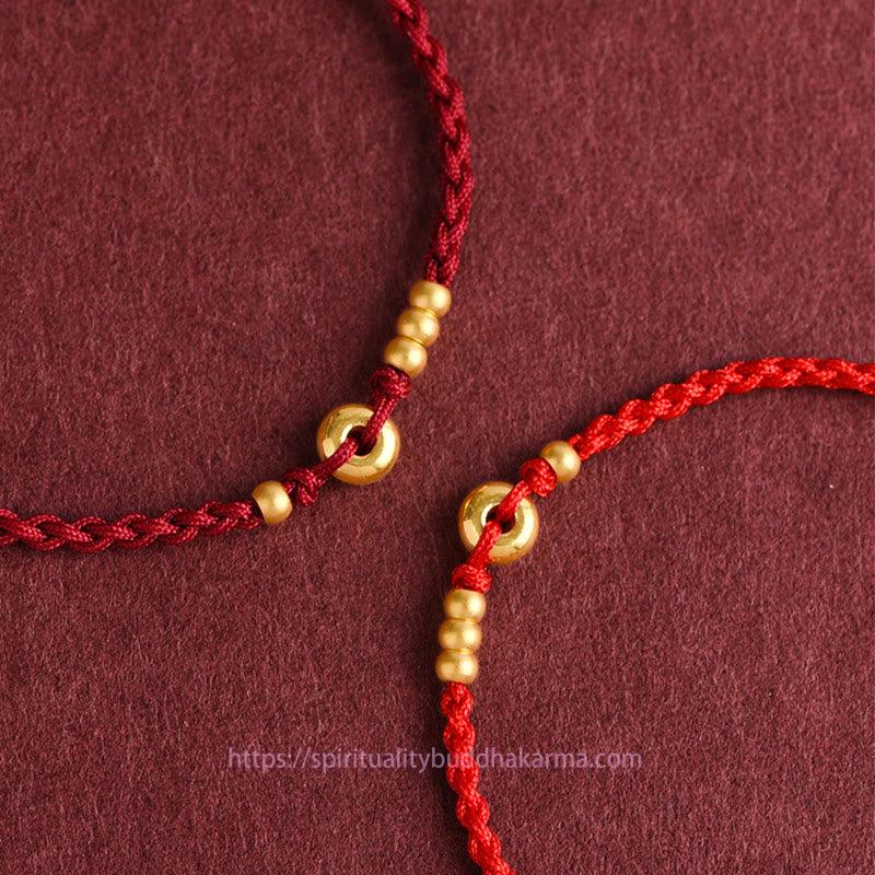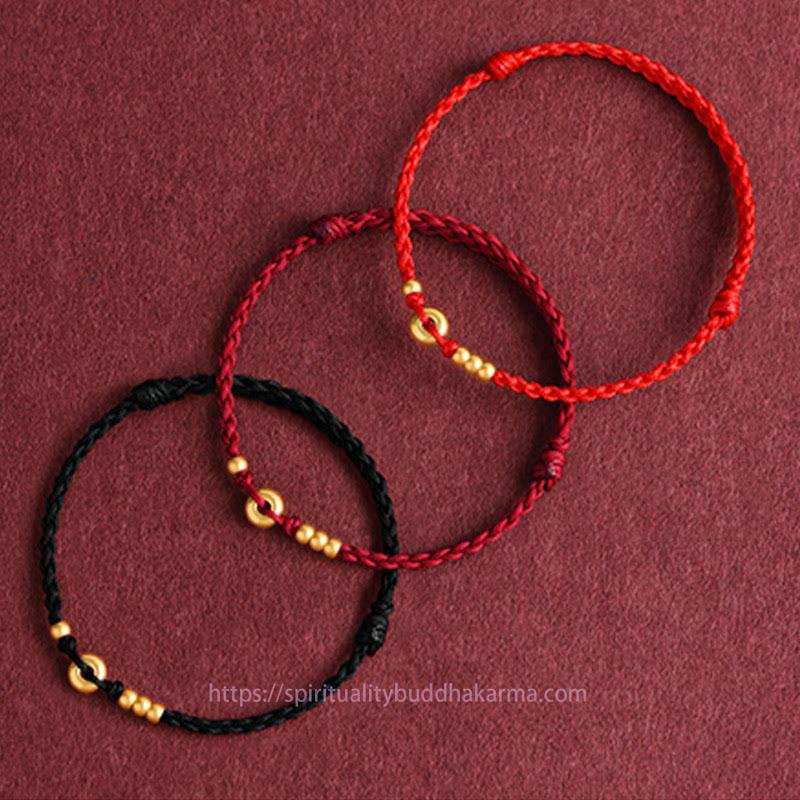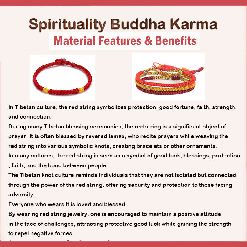 In lineages of Tibetan Vajrayana Buddhism, tying a cord or string around the wrist is common during ceremonies. Traditionally, the Lama blesses the string and then ties a knot and imbues it with a mantra. Similar to other traditions, it's said that these red cords bring luck and offer protection.